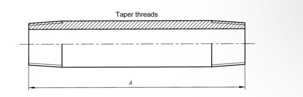 Length: Slightly longer than a close nipple, with a small unthreaded section.